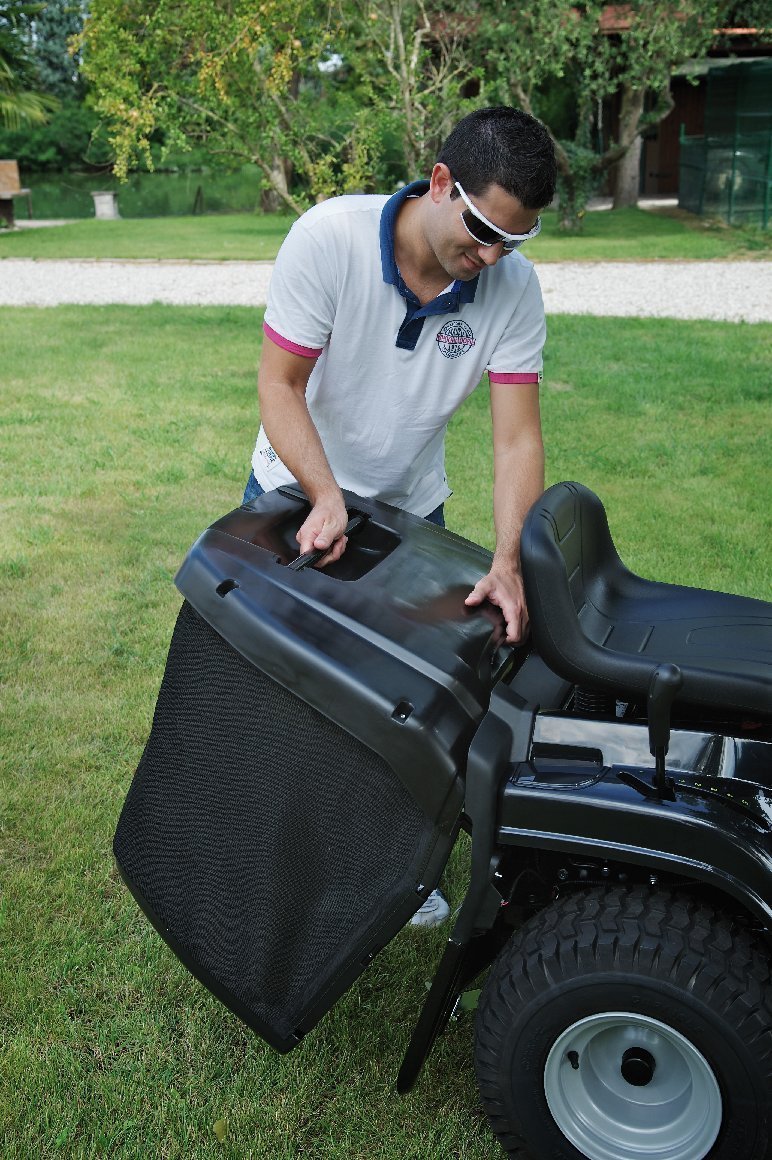 Die serienmäßig im Lieferumfang enthaltene robuste Stoßstange schützt verlässlich die Motorhaube des Rasentraktors