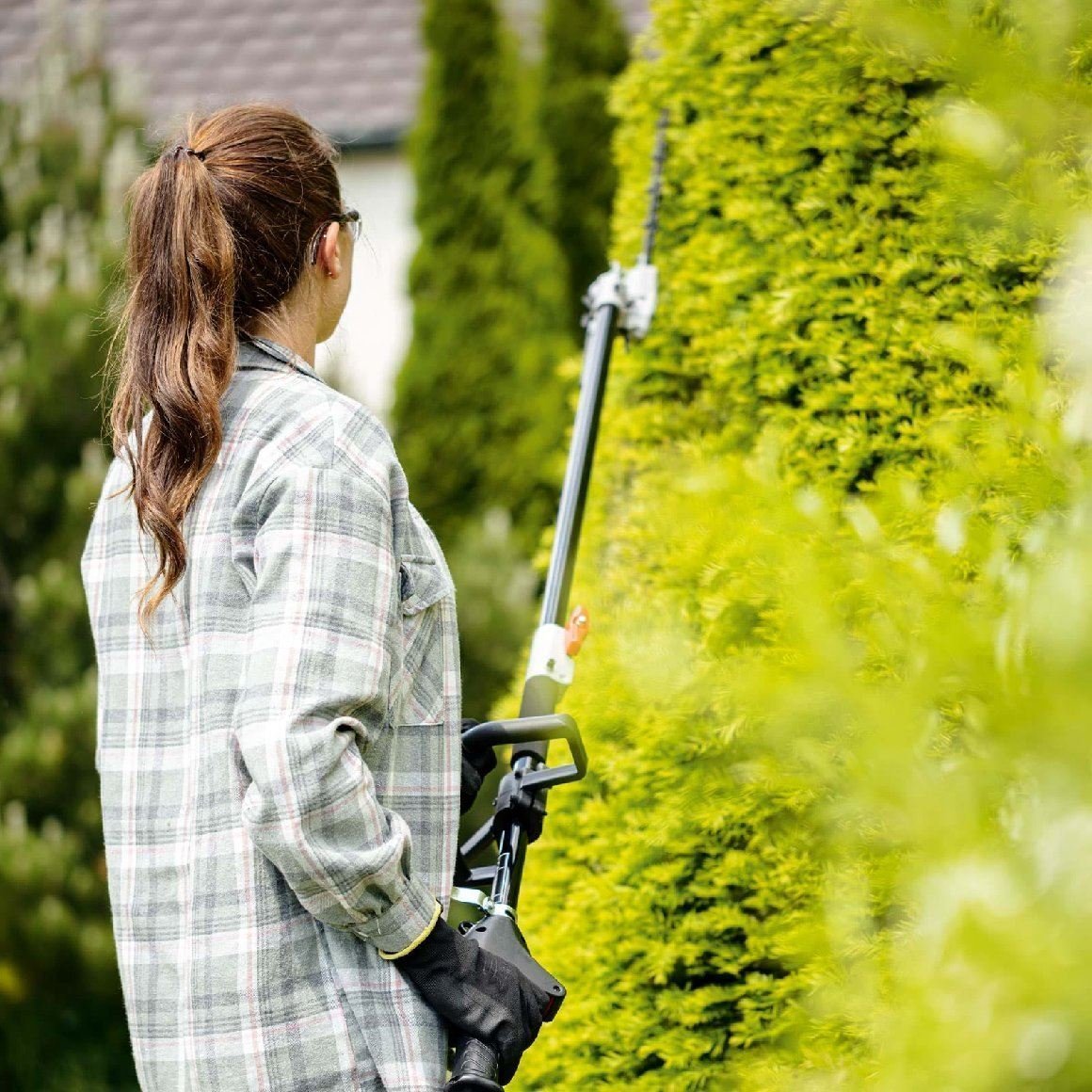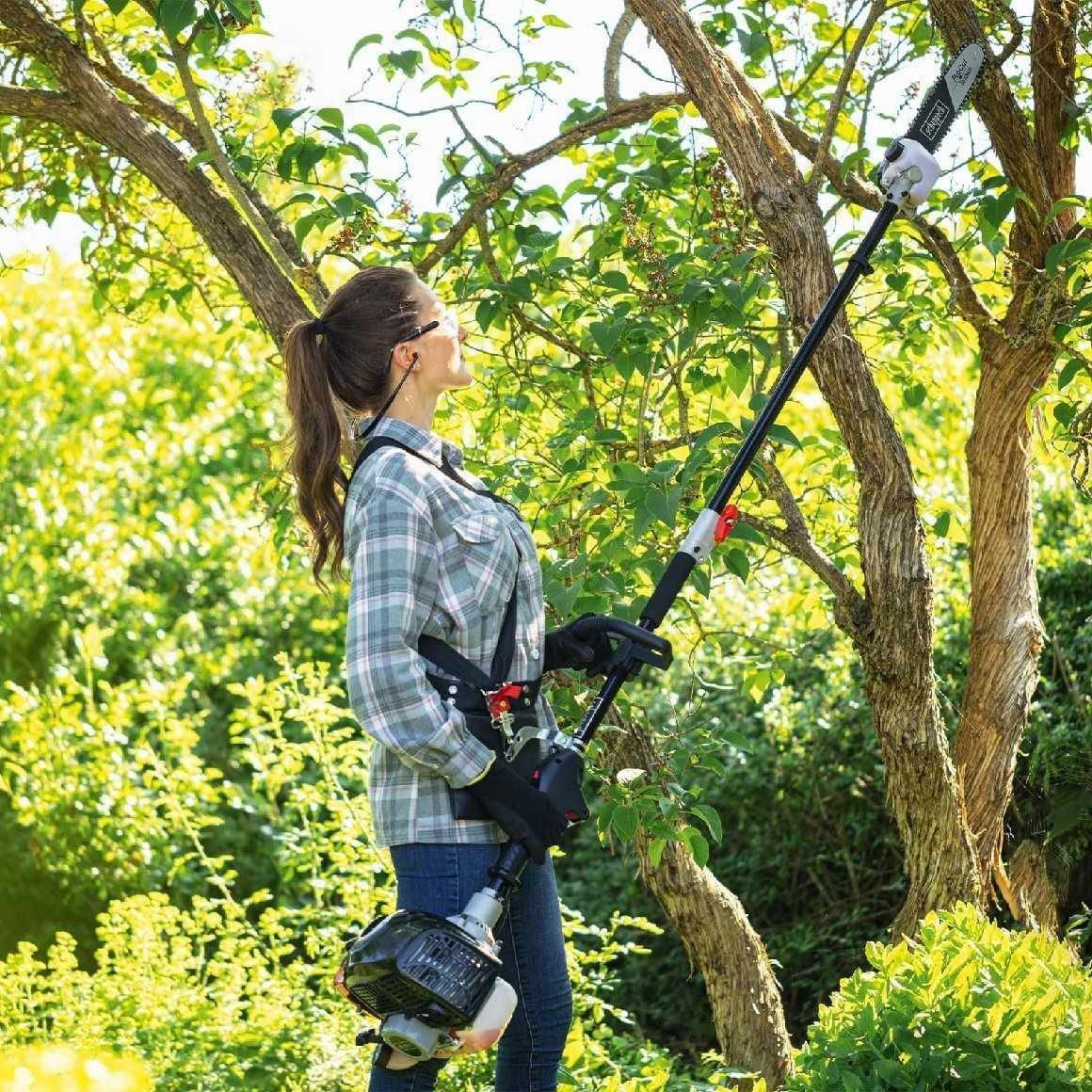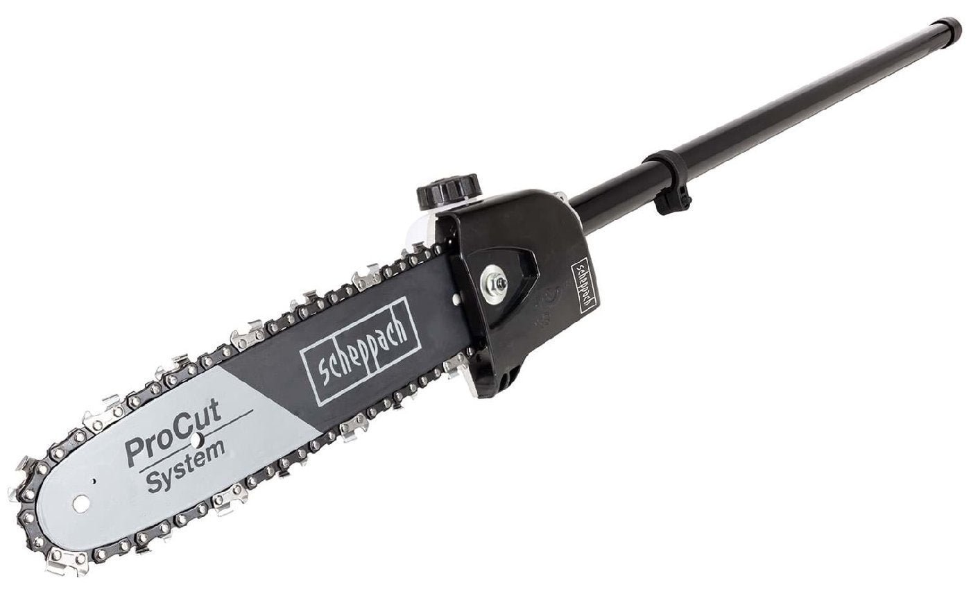 Für die Baumpflege ist der Hochentaster mit 10″ ProCut-Schwert und -Kette die richtige Wahl. Die automatische Kettenschmierung sorgt für reibungslose Arbeitsabläufe beim Entasten. Mit einer Gesamtlänge von 2100 mm, davon 254 mm Schnittlänge, lassen sich Äste und Zweige bequem vom Boden aus entfernen.