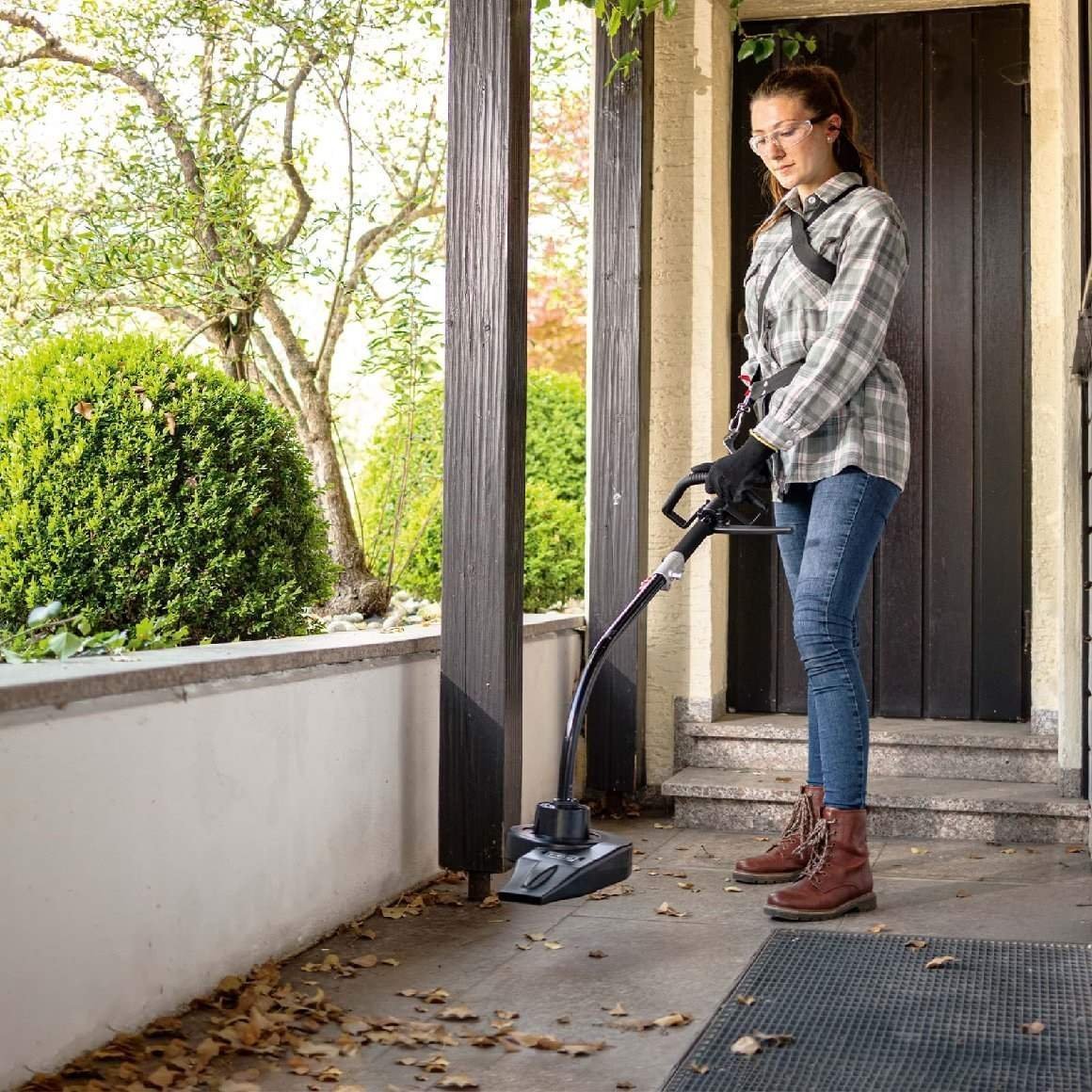 Grasschnitt, der sich beim Rasenkantentrimmen über den Gartenweg verteilt hat, oder Laub, das sich im Herbst auf dem Rasen sammelt, lässt sich leicht mit dem Laubbläser auf einen Haufen blasen, um anschließend leichter entsorgt zu werden. Die Luftgeschwindigkeit des Laubbläsers beträgt ca. 270 km/h bei einem Luftvolumen von 250 m³/h.