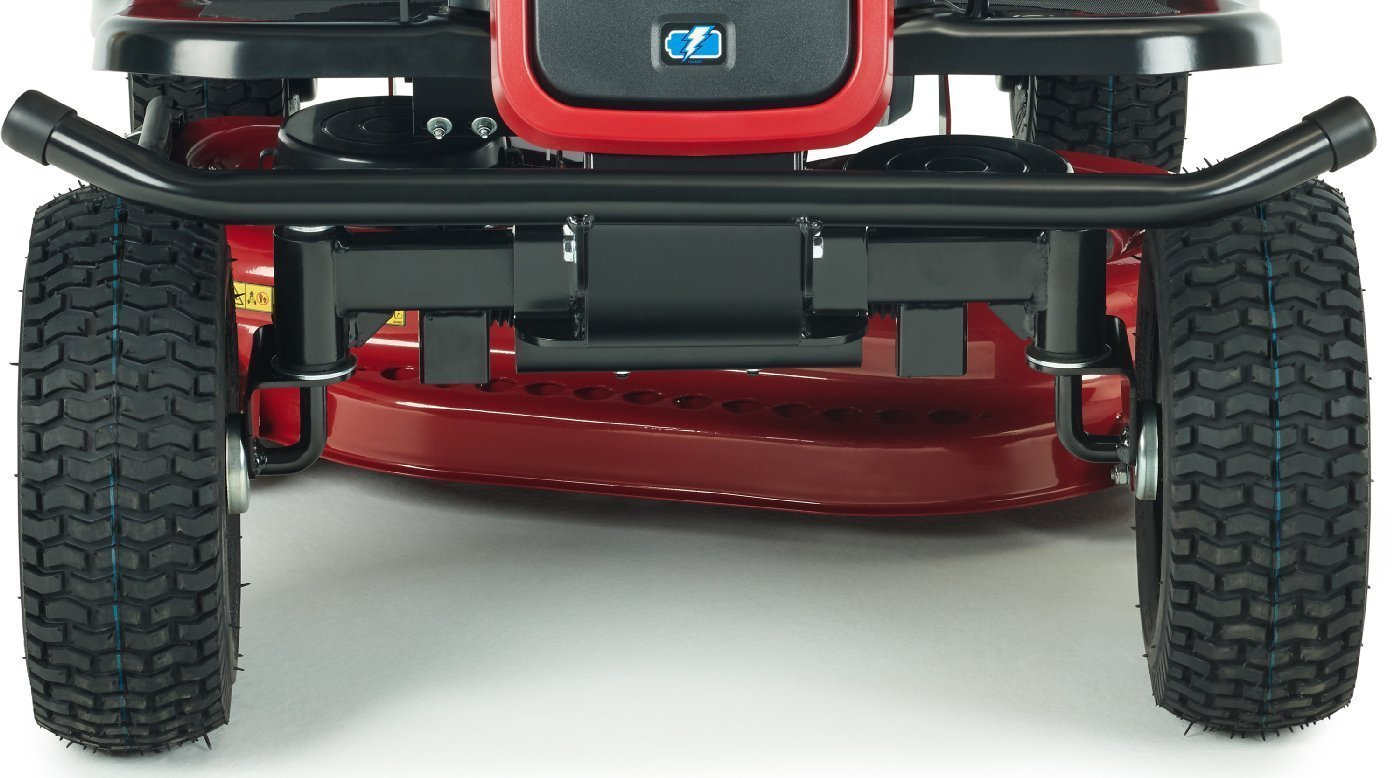 Die Führungsräder am Mähwerk verhindern das Aufsetzen der Messer bei unebenem Gelände.