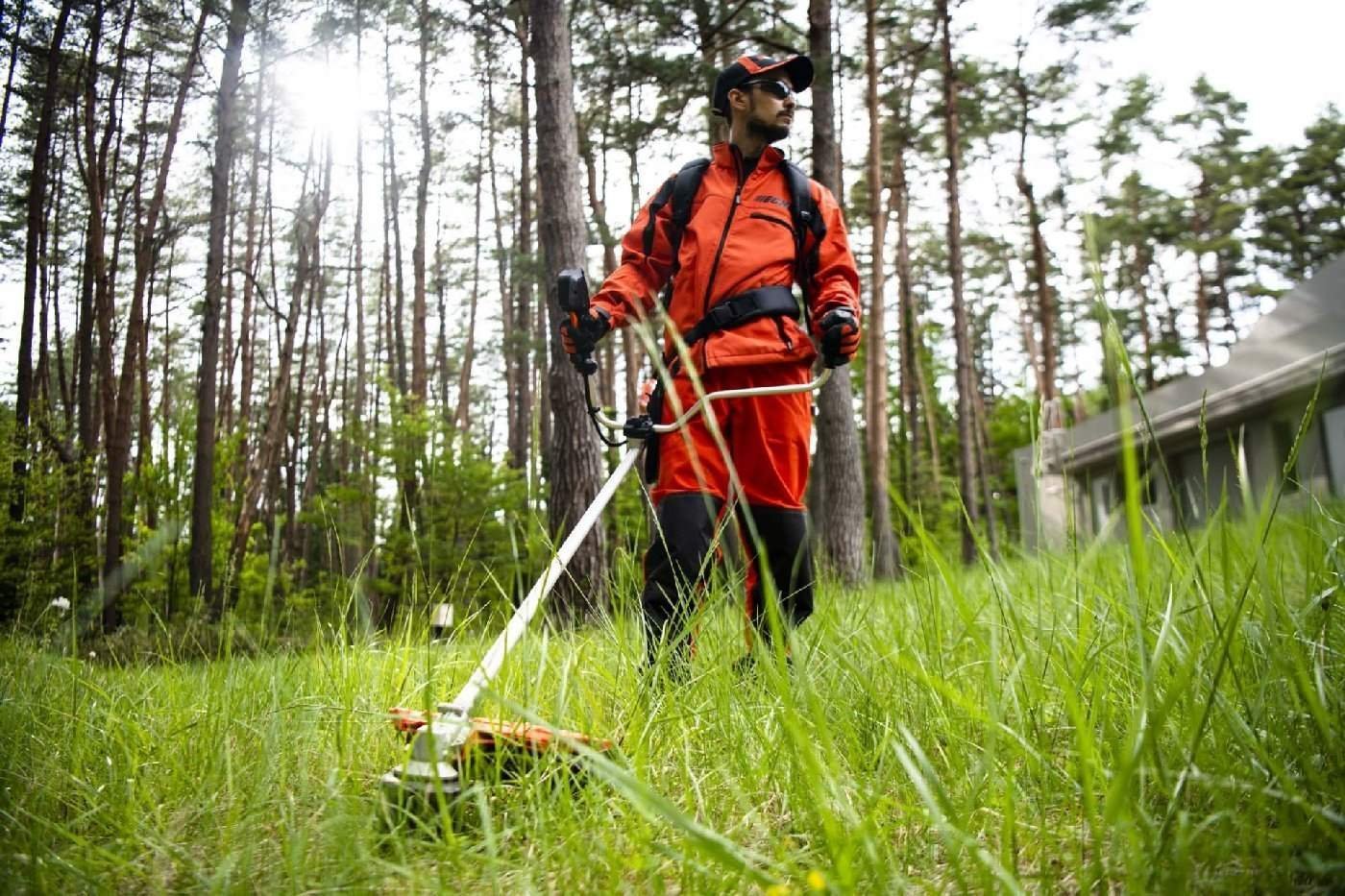 der Zweihandgriff gibt dem Anwender mehr Kontrolle im breiten Schwenken bei der Arbeit auf großen Wiesenflächen