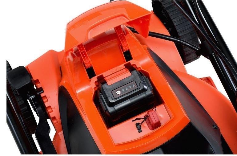 Die Technologie erlaubt es den Rasenmäher zu Kippen und vertikal aufzubewahren