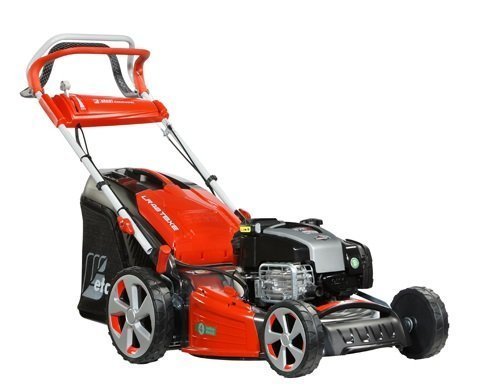 Seitlicher Auswurf serienmäßig, einfach durch Öffnen des Seitenkanals und Einsetzen des Deflektors. Große Räder: 200 mm für die Vorderräder und 280 mm für die Hinterräder. Durch diese Konfiguration wird ein leichtgängiger Lauf auf unwegsamem Gelände sowie eine bessere Manövrierbarkeit der Maschine garantiert. Ergonomische Antriebs- und Motorbremshebel aus Kunststoff für einen sicheren und bequemen Griff. Verstärkter ergonomischer Hebel für die Schnitthöheneinstellung (in 5 Stellungen). Frontaler Stoßschutz. Mulchkeil serienmäßig.