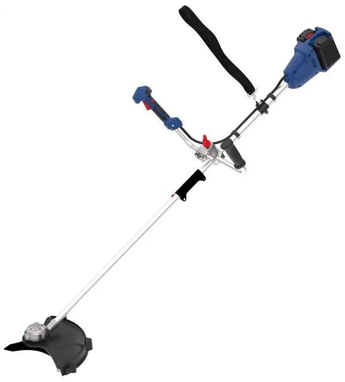 Akku Freischneider, 2 x 18V / 3,0 Ah Akkupack, Doppelladegerät, Fadenspule, Messerblatt 3Z und Tragegurt.