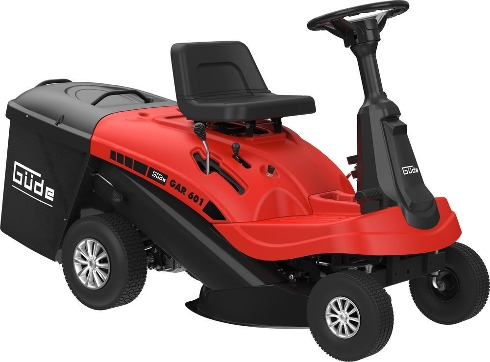 Ihr Powerpaket für richtig große Wiesen und Rasenflächen bis 3000 m² – der Güde Aufsitzrasenmäher GAR 601. Sein leistungsstarker und umweltfreundlicher 4-Takt Verbrennungsmotor erfüllt alle geltenden Abgasnormen der EU und leistet dabei satte 6,5 PS. Mit der 5-Gang Schaltung entscheiden Sie ganz einfach selbst über Ihr individuelles Mähtempo. Aufsitzen, Schlüssel drehen und schon kann es los gehen – dank des komfortablen Elektrostarts.