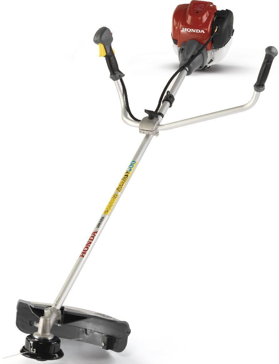 der Zweihandgriff gibt dem Anwender mehr Kontrolle im breiten Schwenken bei der Arbeit auf großen Wiesenflächen