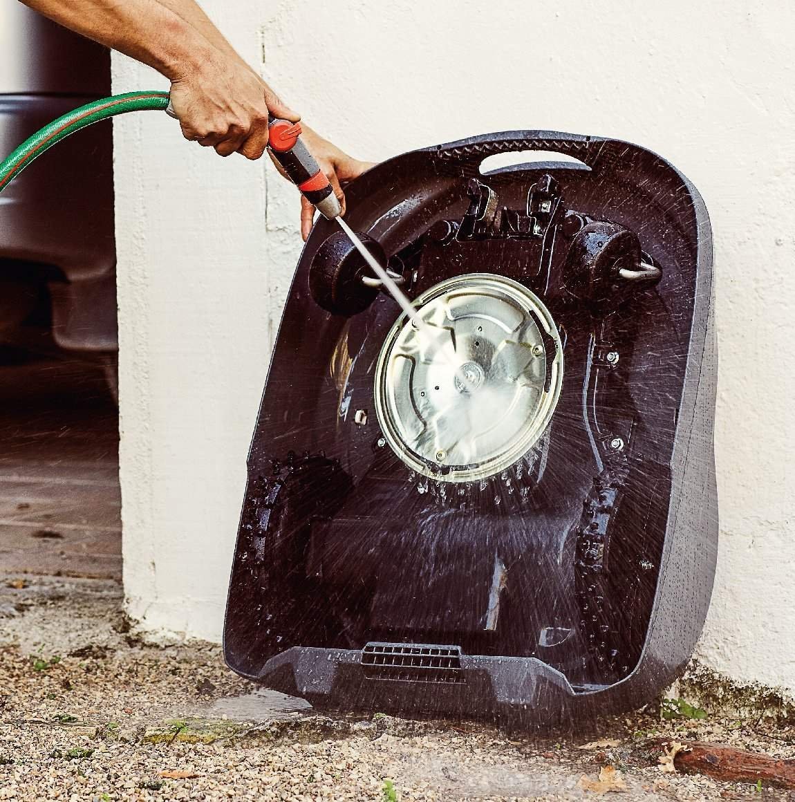 hohe Sicherheit, da durch einen Hebesensor das Mähmesser gestoppt wird, sobald der Mähroboter angehoben wird.