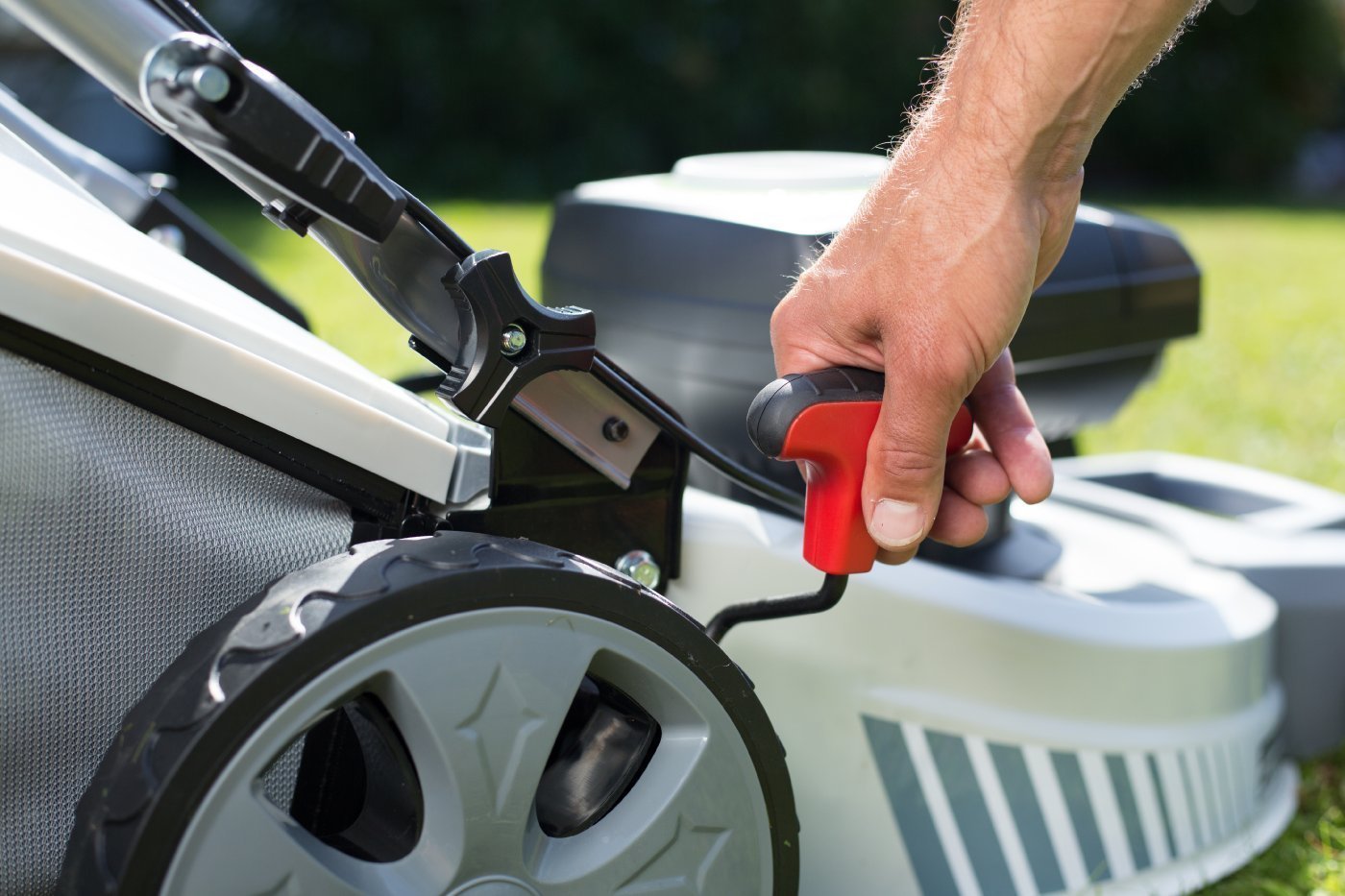 Leichter Transport des Rasenmähers, dank integriertem Transportgriff.