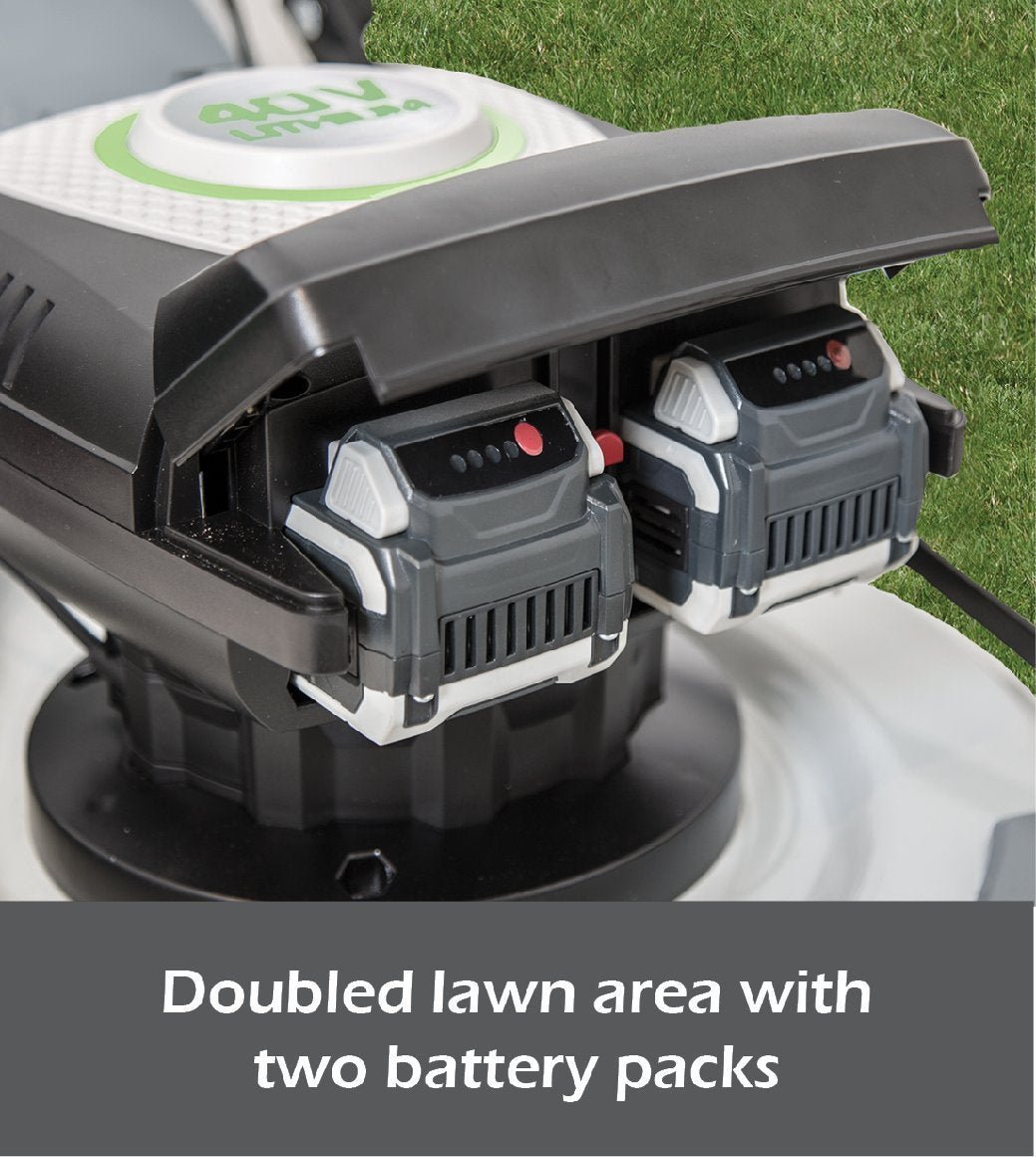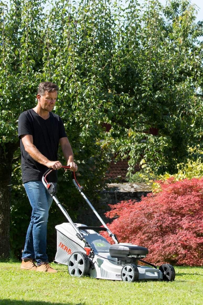 Der akkubetriebene Rasenmäher IAM 40-4325 von IKRA ist für das Rasenmähen von mittleren und großen Rasenflächen im Hobbygarten und privaten Hausgarten vorgesehen und konzipiert. Durch das innovative und flexible Twin-Power-System von IKRA können Sie mit dem Akku Rasenmäher die doppelte Flächenleistung erzielen. Setzen Sie hierfür in beide Akku Steckplätze des Grasmähers je einen 40 Volt Akku ein. So können Sie bis zu 85 Minuten ohne Unterbrechung mit dem handgeführten Akku Rasenmäher den Rasen bearbeiten. Selbstverständlich können Sie auch nur einen 40-V-Akku in das rasenmähende Gerät einzusetzen.In diesem Falle beträgt die Laufzeit des Mähers allerdings nur ca. 42 Minuten.Die Laufzeit steht natürlich auch in Abhängigkeit zu Ihrem Grundstück.