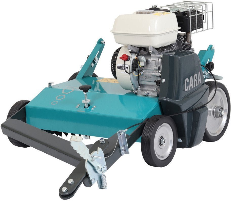 Der Cara 60 T ist universell einsetzbar: er eignet sich sowohl als von Hand geschobenes Gerät als auch in Kombination mit einer Zugmaschine. Denn neben dem serinmäßigen Holmgriff besitzt der Cara 60 T zusätzlich eine Zugdeichsel, um ihn hinter einen Rasentraktor zu spannen. Da die Deichsel asymmetrisch ist, läuft der Vertikutierer seitlich versetzt zur Zugmaschine, sodass unmittelbar bis an Begrenzungen wie Wände, Zäune etc. vertikutiert werden kann.