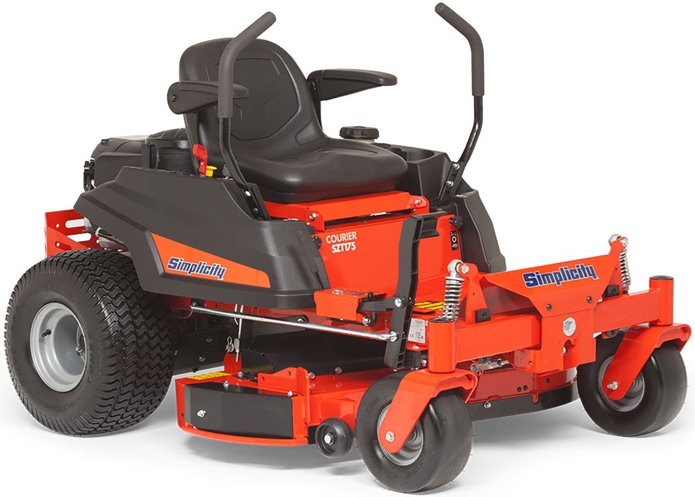 Der Courier™ Nullwendekreismäher (Zero-Turn) von Simplicity ist die perfekte Wahl für die gewissenhafte Rasenpflege. Mit einem 107 cm (42 Zoll) Stahlrahmengehäuse CentreCut™ verleiht der Courier™ SZT175 Ihrem Rasen einen vollkommenen Schnitt, bei angenehmem Fahrtbetrieb dank Federung. Dazu sparen Sie noch Zeit und Mühe mit der Ladefläche. Die neuen Courier™ Zero-Turn-Rasenmäher sind vielseitiger als jemals zuvor.