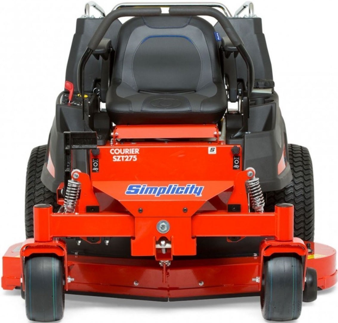 Der Zero-Turn-Mäher Courier™ SZT 275 bietet mit seiner Arbeitsbreite von 1.220 mm noch mehr Effizienz. Bei dem CentreCut™ Mähwerk kommen die Eliminator®- Mulchmesser zum Einsatz. Das Ergebnis ist eine ausgezeichnete Schnittleistung. Durch den Heckauswurf landet kein Schnittgut auf Beeten oder Wegen. Die Mähwerkzuschaltung funktioniert elektrisch, die Mähwerkaushebung ist pedalgesteuert.