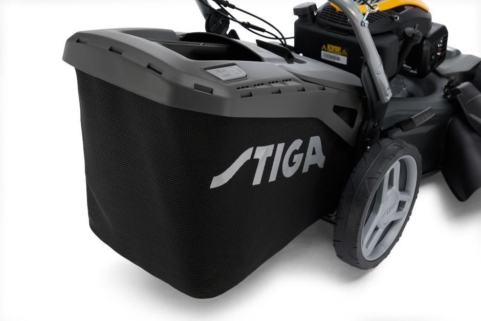 Selbstfahrender Rasenmäher mit STIGA Engine ST 200, 196 cc. Geeignet für Gärten bis zu 2000 m². Mit 4 Schneidemethoden: Sammeln, Mulchen, Seiten- und Heckauswurf. Geräumiger 70 Liter Fangkorb inklusive.