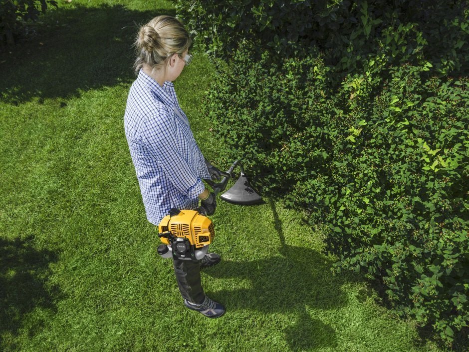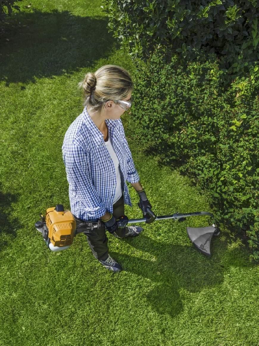 Der Rasentrimmer STIGA GT 330 A ist mit einem 25,4-cm³-Benzinmotor und einem gebogenen Schaft ausgestattet, um Rasenkanten allen Hindernissen zum Trotz ein perfektes Aussehen zu verleihen. Der Schaft ist zusammengesetzt, um bei der Aufbewahrung Platz zu sparen und ihn leichter transportieren zu können. Der GT 330 A ist mit einem Einhandgriff und dem innovativen Tap&Go-Doppelfaden-Trimmerkopf ausgestattet, bei dem sich der Trimmerfaden einfach durch Auftippen des Trimmerkopfs auf den Boden nachladen lässt. Dieser Rasentrimmer weist 38 cm Schnittbreite auf.