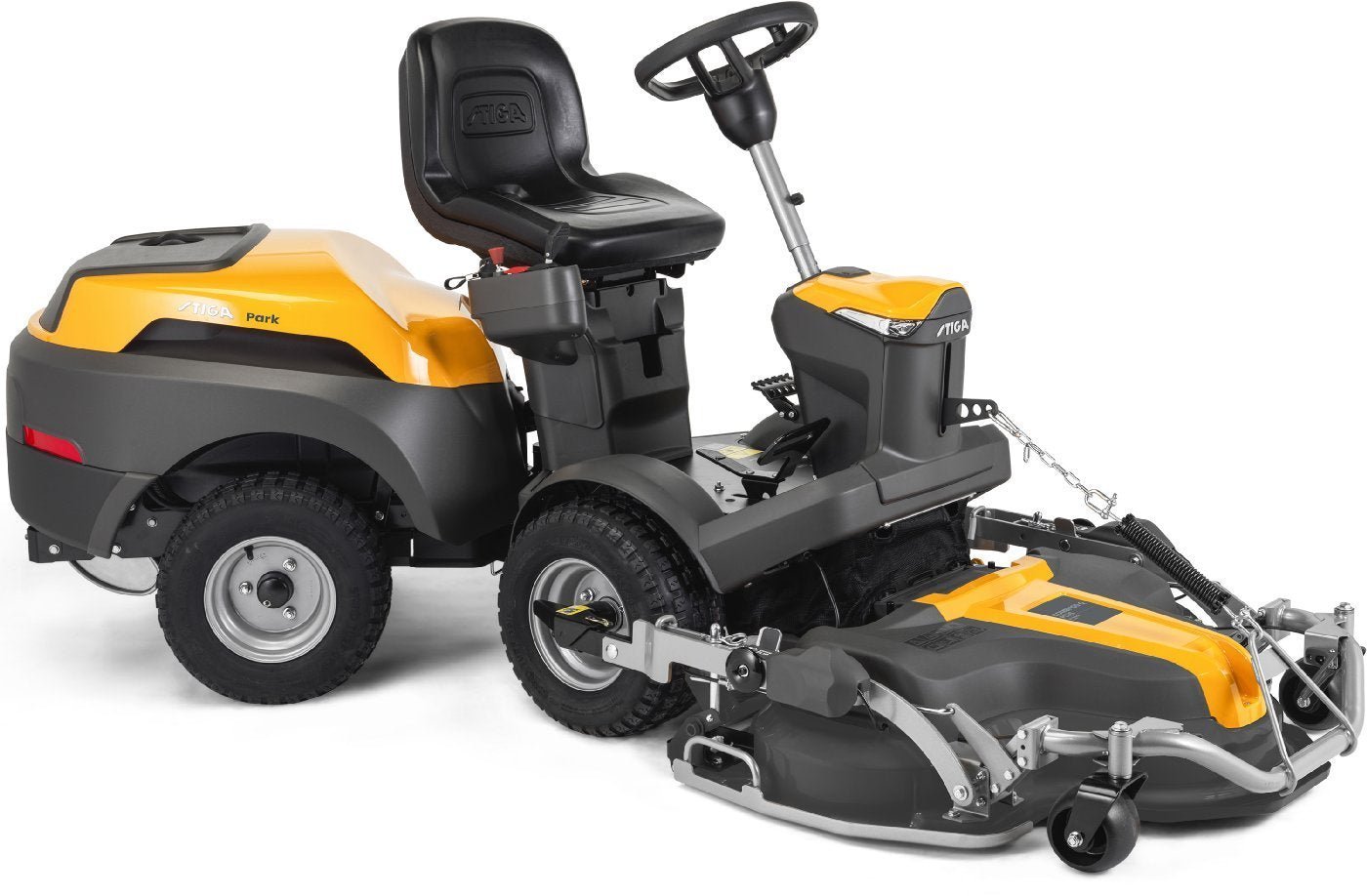 Der Frontmäher Park 500 WX kann mühelos für alle Mäharbeiten und Geländeneigungen eingesetzt werden dank des leistungsstarken 586-cm³-Zweizylindermotors ST 550 von STIGA und des Tuff Torq-Transaxle-Allradgetriebes. Die Maschine erleichtert dank der 50:50-Knickservolenkung und der innovativen Chassis-Bauweise das Lenken und Umfahren um Bäume und Beete. Und dank der großzügigen Schnittbreite von 95 cm bis 125 cm kann der Park 340 schnell große Rasenflächen bearbeiten. Das frontmontierte Mähwerk des Park 500 WX gibt dir freie Sicht nach vorn, müheloses Erreichen von Ecken und Winkeln und wunderbare Ergebnisse an den Rasenkanten. Und da es sich um ein Schwebemähwerk handelt, kann die Maschine problemlos auch gut auf unebenen Untergründen eingesetzt werden. Um das Mähwerk innerhalb von Sekunden zu reinigen, aktiviere einfach den QuickFlip-Mechanismus. Das kompakte Armaturenbrett bietet dir praktische Steuerungen, beispielsweise eine elektronische Schnitthöheneinstellung. Damit außerdem auch bei schlechten Lichtverhältnissen sicher gearbeitet werden kann, ist der Park Frontmäher mit hellen LED-Scheinwerfern mit Normal- und Fernlicht ausgestattet. Das ist z.B. im Winter hilfreich, wenn du deinen Frontmäher in Verbindung mit einem Schneeräumschild, einer Kehrmaschine oder einer Schneefräse in ein Ganzjahresgerät verwandelst. Damit du immer eine bequemen Haltung hast, ist der Sitz des Frontmähers mit einer komfortablen Rückenlehne ausgestattet und es gibt jede Menge Beinfreiheit. Ganz gleich, wie hoch das Gras oder wie uneben der Boden ist – nimm Platz, entspann dich und lass den Park 500 WX den Rest erledigen. Anhängerkupplung inklusive.