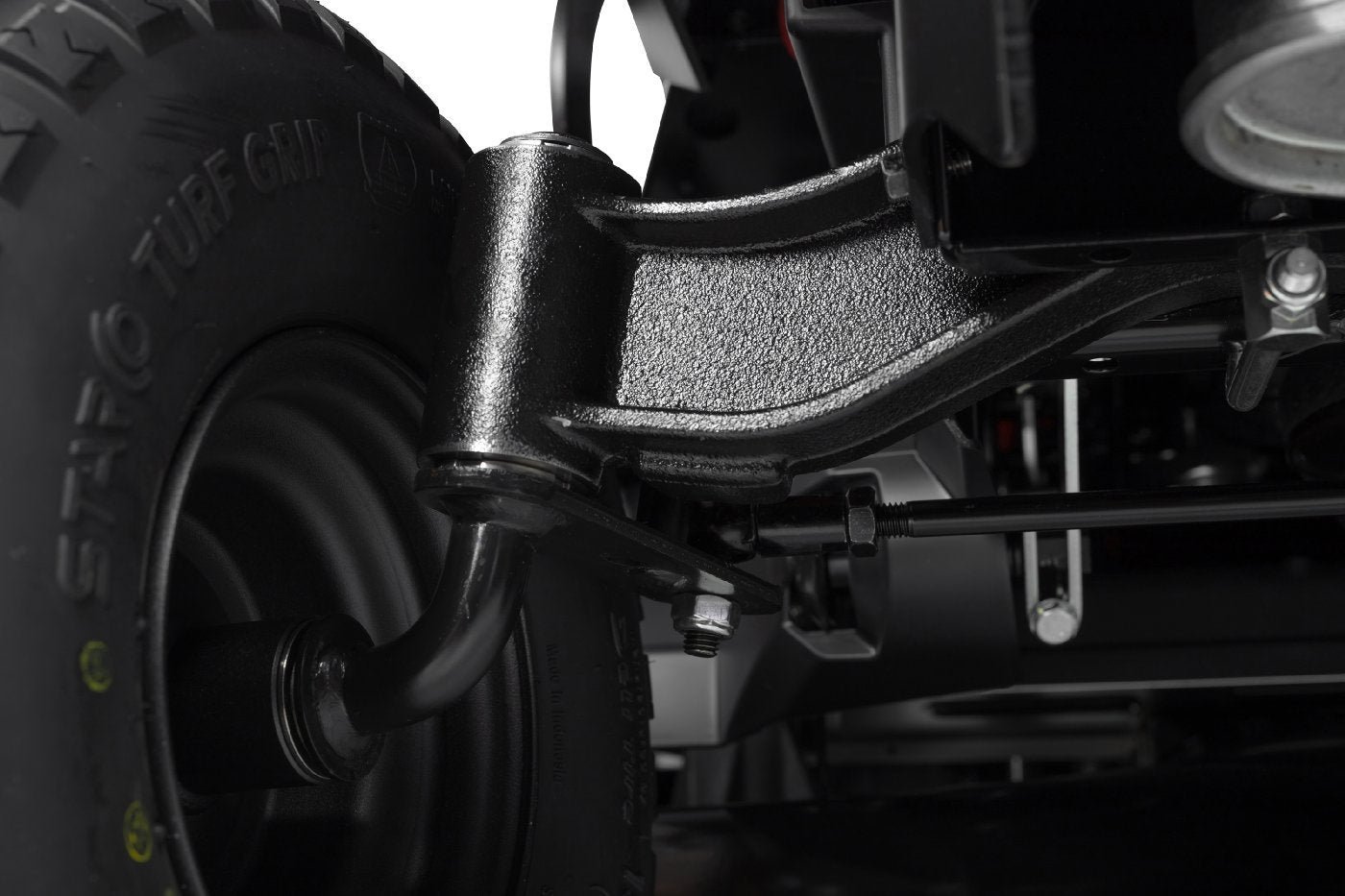 Diese robuste Maschine ist mit einer gusseisernen Vorderachse ausgestattet, die für den regelmäßigen, schweren Einsatz in unwegsamem Gelände ausgelegt ist.