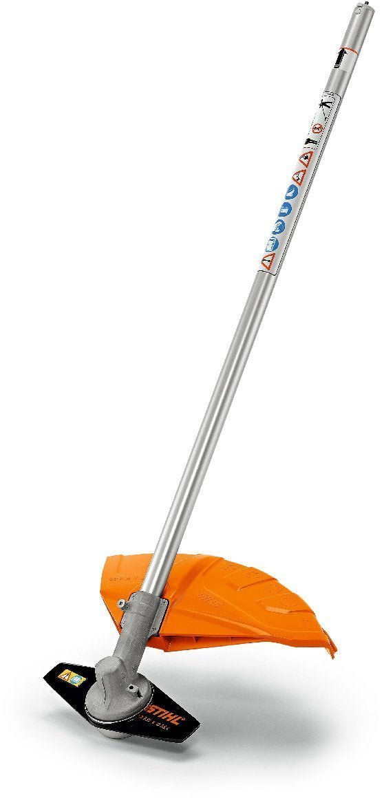 KombiWerkzeug Grasschneideblatt mit 2 Flügeln für das STIHL KombiSystem. Zum Mähen von Unkraut, Brennnesseln oder Schilf. Gewicht: 1,2 kg. Gesamtlänge: 94 cm. Zugelassen für alle KombiMotoren und FR 130 T.