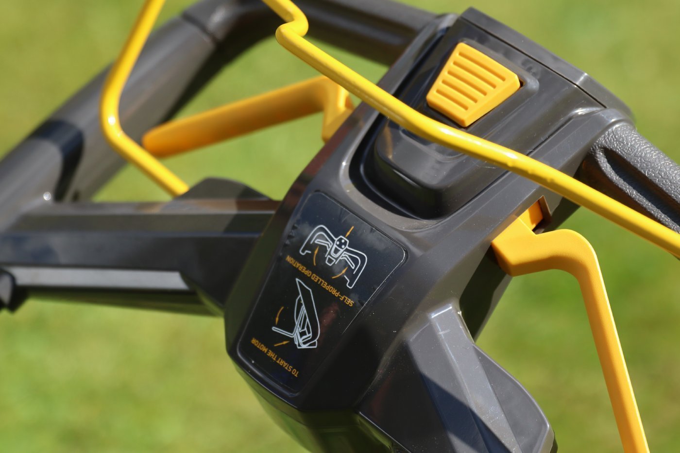 Dank des klappbaren Führungsholm kann der Rasenmäher platzsparend eingelagert oder transportiert werden.