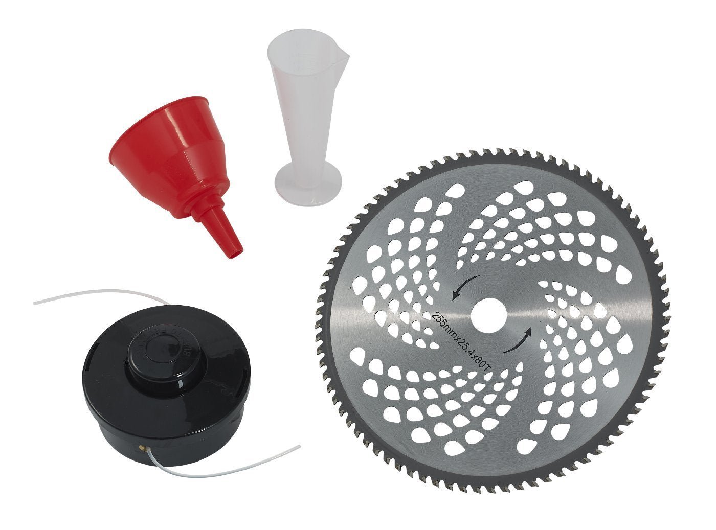 | Schneidausrüstung | 3-Zahn und 80-Zahn Messer und Doppelfadenkopf |