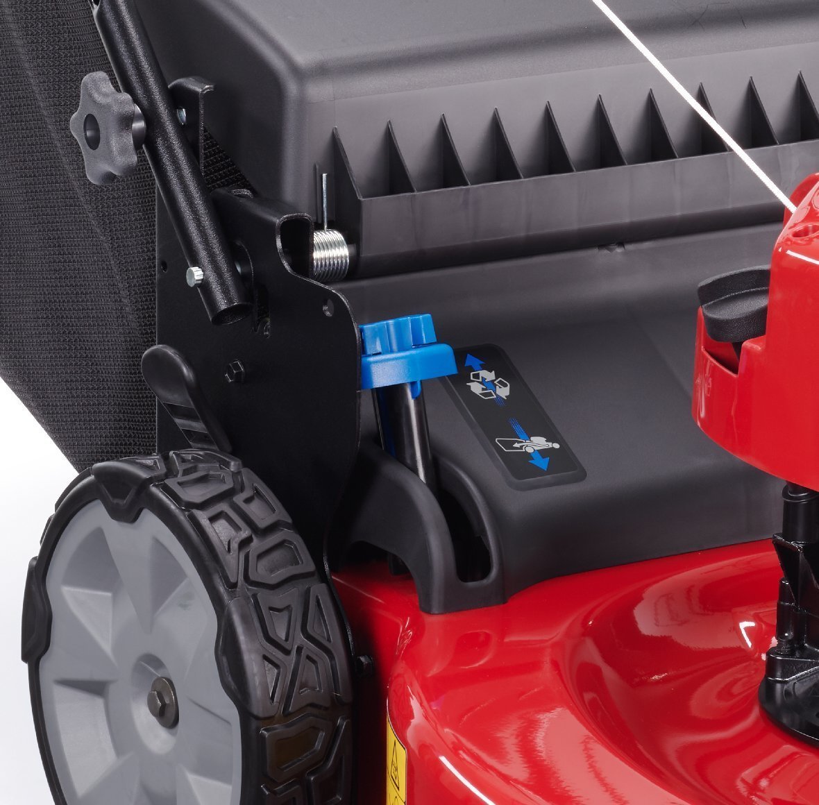 Das Toro ADS AutoMatic Antriebssystem passt die Mähgeschwindigkeit an das persönliche Schritttempo anÜber den Schnellwechselhebel wird in Sekundenschnelle vom Mulchen zum Heckfangsystem gewechselt; der Grasfangsack kann immer montiert bleiben.